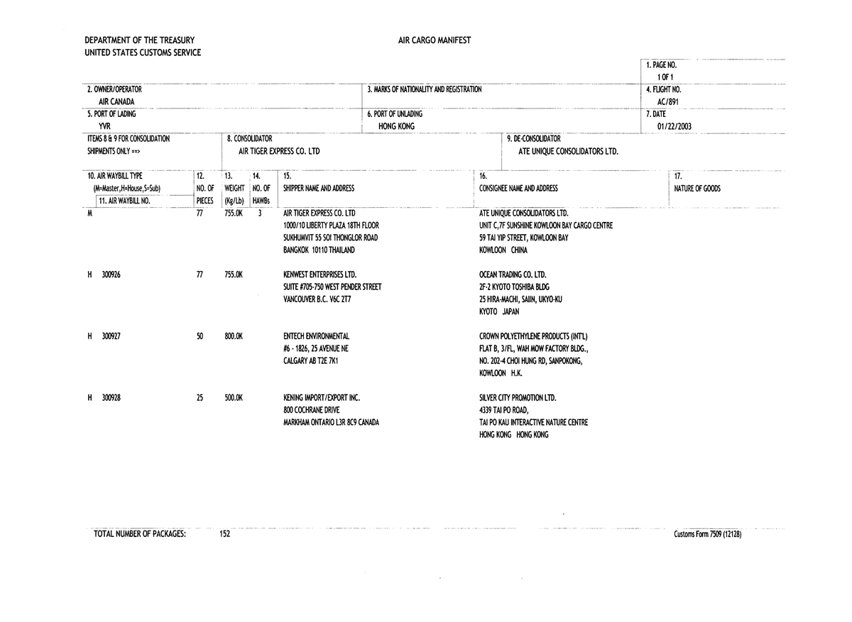 Air Cargo Manifest
