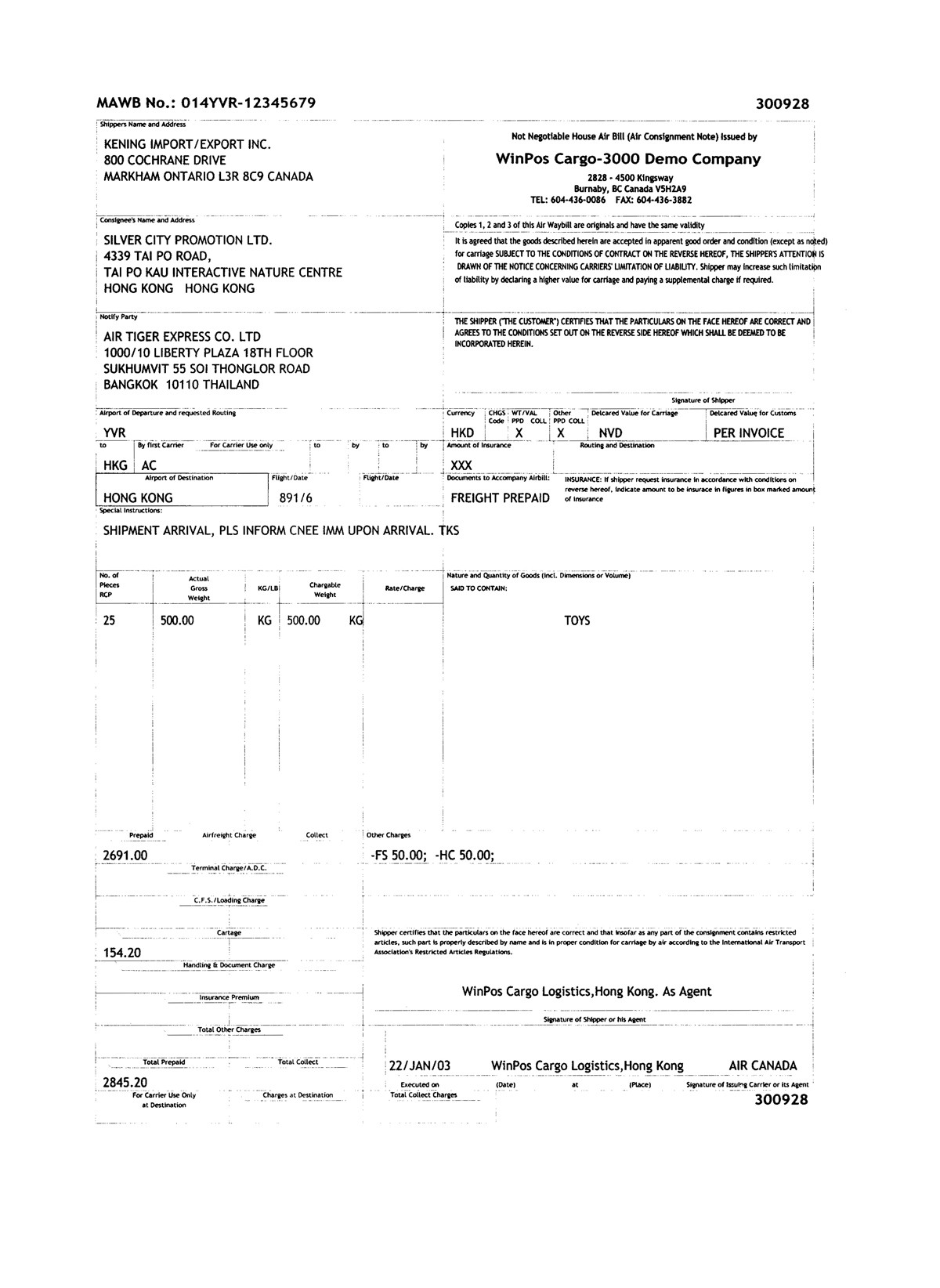 Air Consignment Note